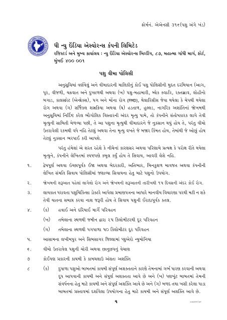 Cattle Insurance Policy Pdf The New India Assurance Co Ltd
